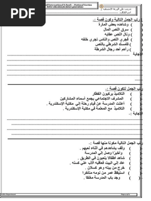 اللغة العربية أوراق عمل كتابة قصة ترتيب الجمل البسيطة واللوحات المصورة للصف الثاني ملفاتي