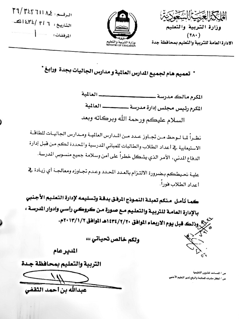 تعميم عاجل من التعليم بشأن الانضباط الدراسي.