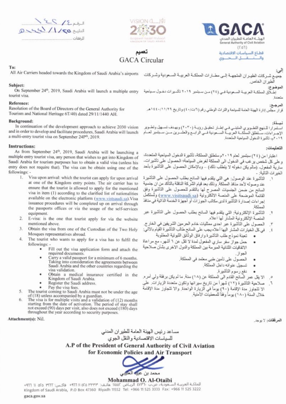 تعميم رسمي صادر من الهيئة العامة للطيران المدني السعودي لجميع شركات الطيران سيادة المواطن