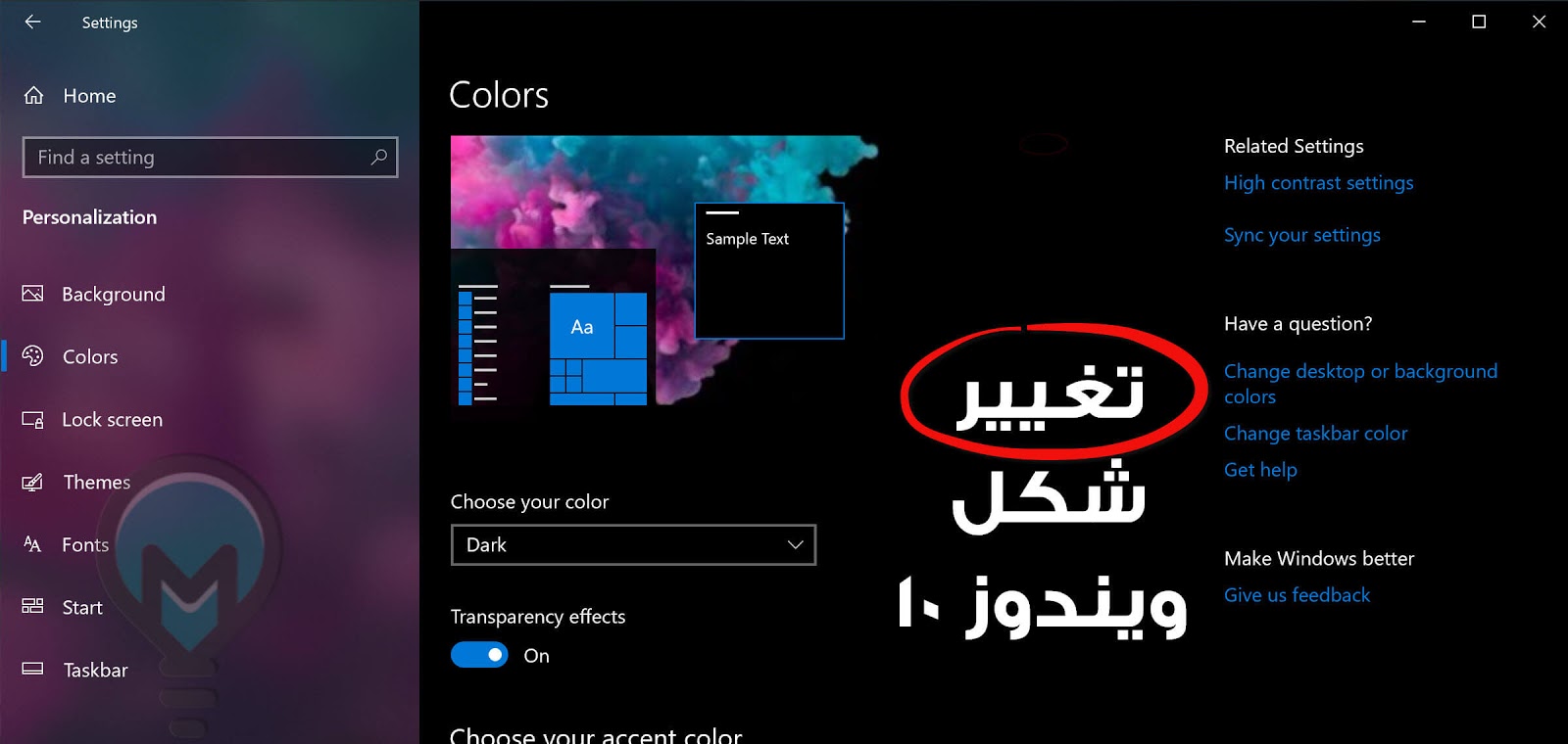 تغيير شكل ويندوز10 اعدادات التخصيص