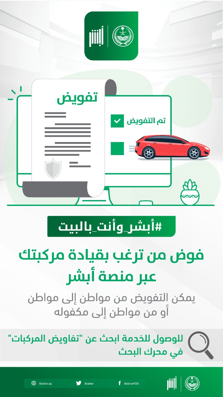 التحقق من تفويض مراجعة قطاع مرحبا بك في خدمة التحقق. لقد تم اضافة طلب تفويض القيادة بنجاح. ومن أجل القيام بتفويض مركبة داخل المملكة العربية السعودية يجب عليك تعبئة الاستمارة الالكترونية عبر حسابك داخل منصة أبشر وهو شرط أساسى و إجباري من أجل الحصول على خدمة تفويض قيادة مركبة. انواع الوكالات في عقد الوكالة الالكترونية.