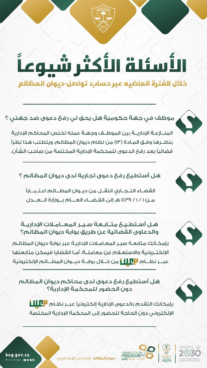 ديوان المظالم تواصل On Twitter أبرز الاستفسارات الواردة لحساب Bogcare خلال الفترة الماضية مبادرة نشر ديوان المظالم