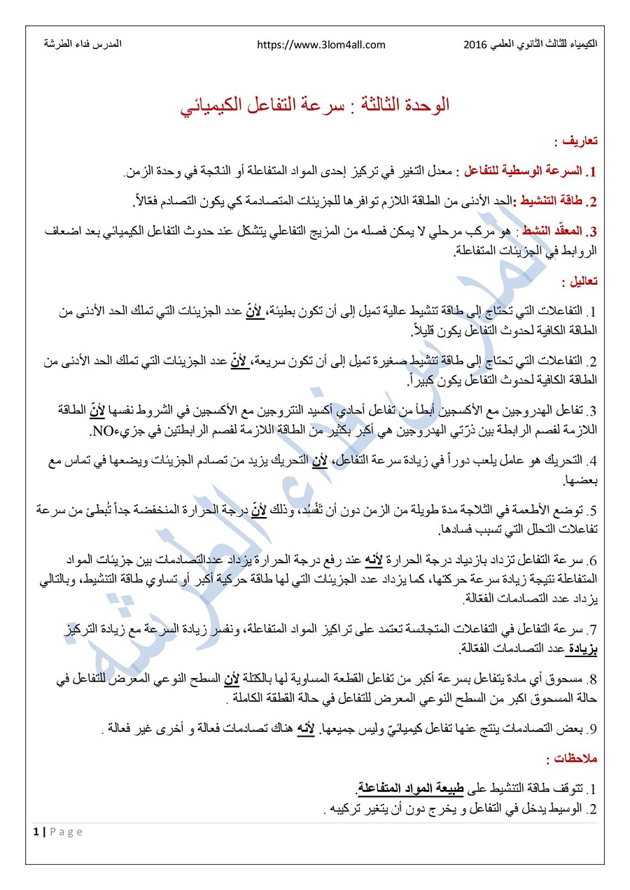 عبدالله الهاشمي Twitterren تلخيص درس سرعة التفاعل العوامل المؤثرة على سرعة التفاعل من صفحة ٦٢ إلى صفحة ٦٨ تلخيص الهاشمي ١٢ف١