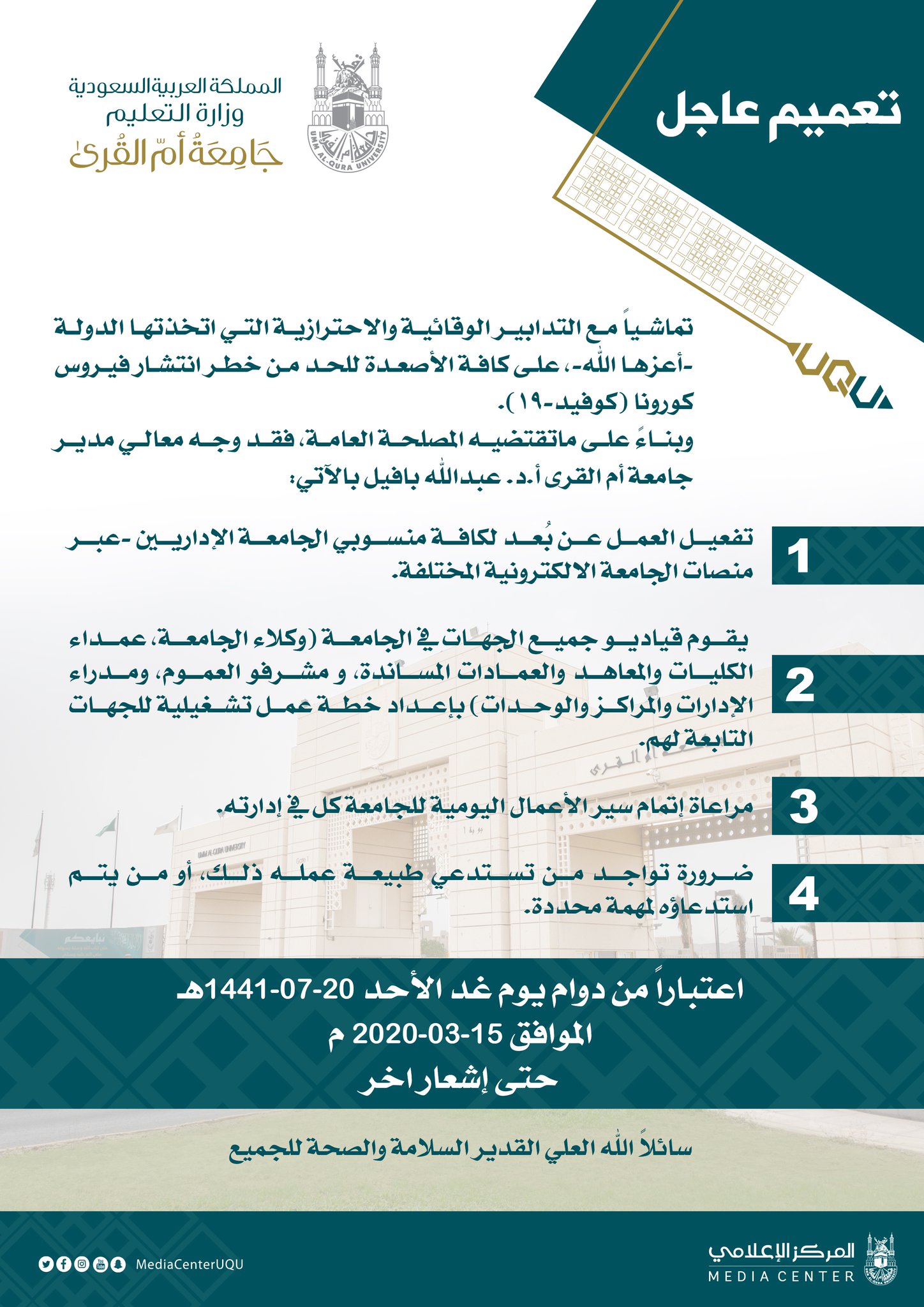 جامعة ام القرى عن بعد. تعلن جامعة أم القرى عن طرح 20 دورة تدريبية مجانية عن بعد للرجال والنساء ضمن الاسبوع الأول من مبادرة همة التدريبية تسعون دورة لتسعين عاما سعودية مع شهادات معتمدة من الجامعة على النحو التالي. جامعة أم القرى. وتضمنت الضوابط أن تكون دراسة جميع متطلبات الجامعة والكليات ذات الطابع النظري في جميع مقار الجامعة والدراسة. تم النشر في.
