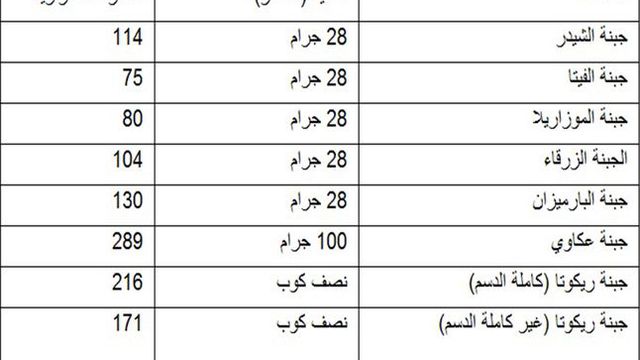 جدول السعرات الحرارية لجميع انواع الطعام المرسال