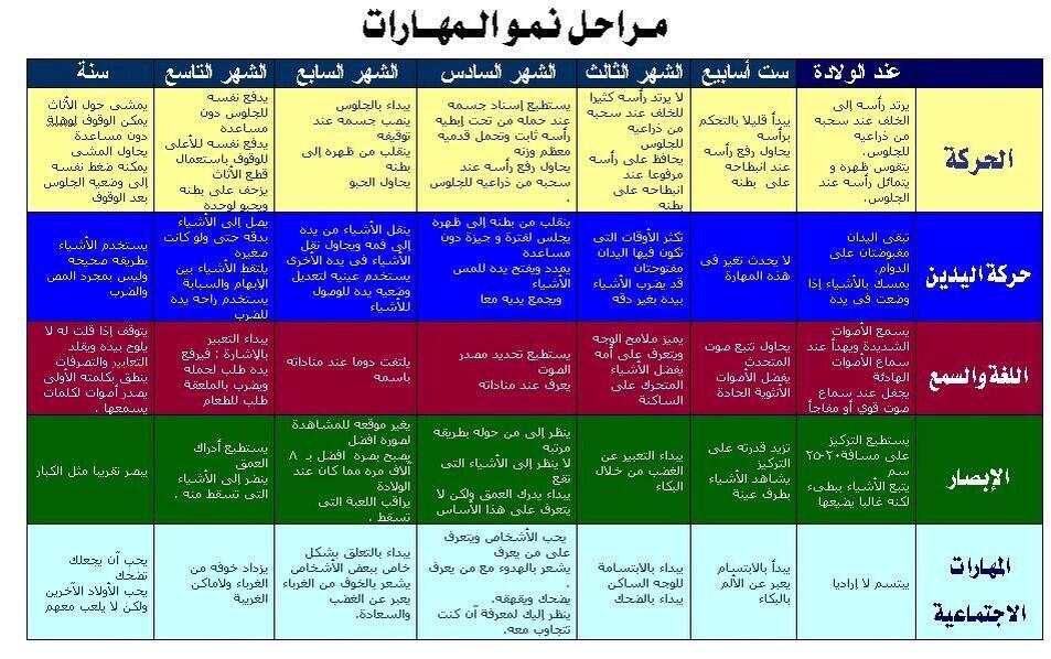 جدول مراحل نمو الطفل