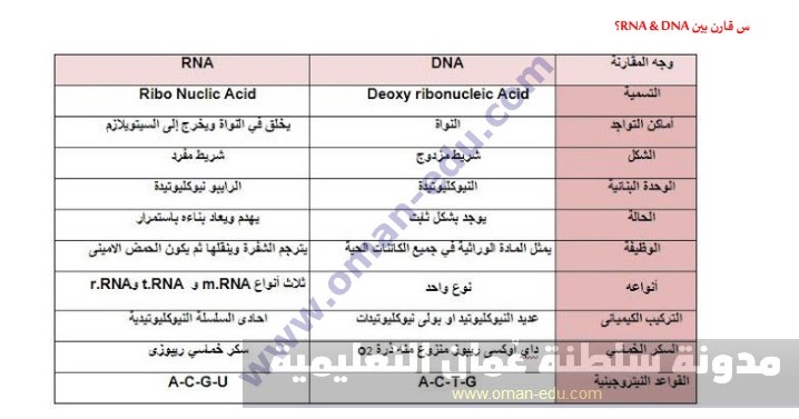 الفرق بين Dna و Rna الحمض النووي الريبوزي منقوص الاوكسجين والحمض النووي الريبوزي